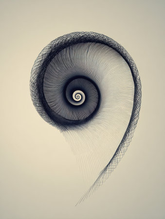 A captivating spiral design composed of delicate lines reveals the harmony of artistic expression and geometric forms within a neutral background.