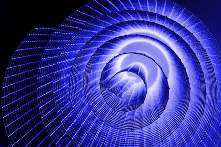 A spiral of blue and white lights