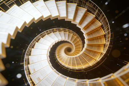 Golden spiral digital artwork created with generative AI technology