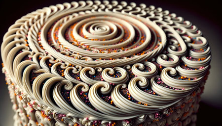 A close up of a candle with a spiral design on it. Generative AI image.