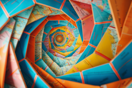 An abstract composition features a swirling spiral composed of countless colored particles. The artwork displays a variety of colors, creating a vibrant and dynamic visual experience. The design suggests a sense of depth and movement, potentially suitable for digital art, visual effects, and graphic design applications. The image can be used for a wide range of creative and commercial projects.