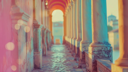 Defocused pastel hues of blurred temples and columns transport viewers to ancient civilizations long forgotten sparking a sense of nostalgia and reflection on the passage of time.