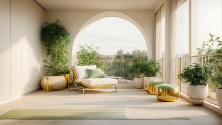modern apartment with minimalist interior and stunning window garden on balcony, created with generative ai