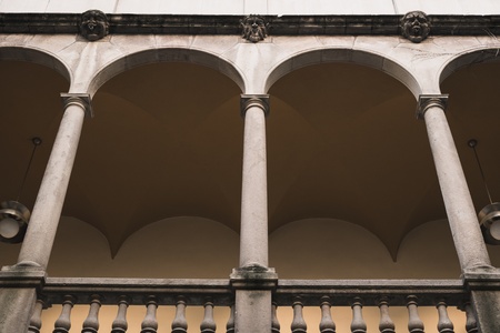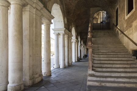 Vicenza,Italy-April 3,2015:view of the particular of the colonnade of the Palladian basilica in the center of Vicenza during a sunny day.
