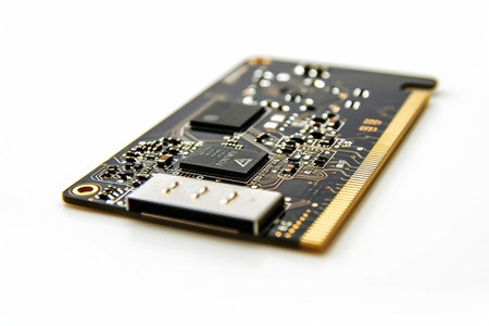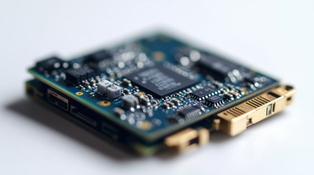 A close up of circuit board with microchips and electronic components showing detailed technology and automation in business and industry
