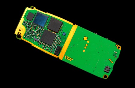 Circuit board of a cell phone isolated on black