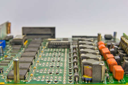 Close-up of electronic circuit board. Selective focus on the details.