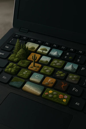 A detailed close-up of mechanical gears and colorful blocks arranged on a circuit board, creating a futuristic and technological mood.