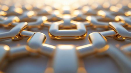 A captivating close-up view of shiny gold chain links, illustrating connections and strength in an elegant soft-focus background, perfect for digital design and creative projects.