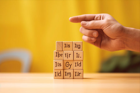 Wooden Blocks Connected in a Network Showing Various Technology Icons, generative Ai
