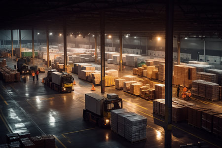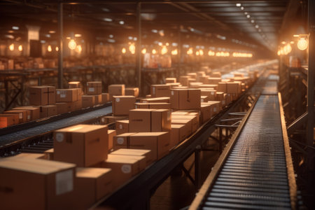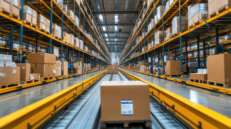 Vast logistics warehouse brimming with boxes, parcels, and merchandise ready for distribution