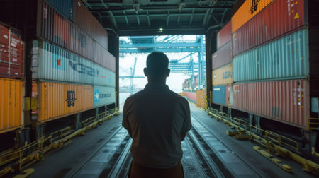 Container freight station. Import and Export concept. Generative AI.