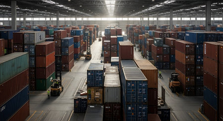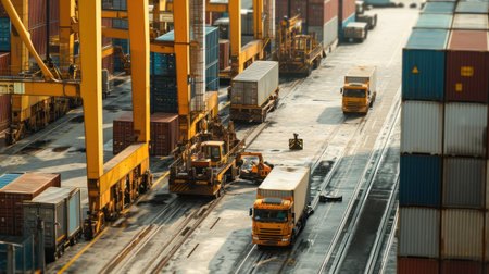 Urban Distribution Hub: Containers Loaded onto Trucks for Last-Mile Delivery Plans Departing