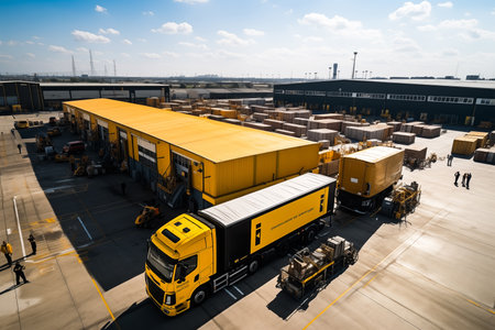 Generative AI : Delivering or Supply concept image Trucks loading at facility