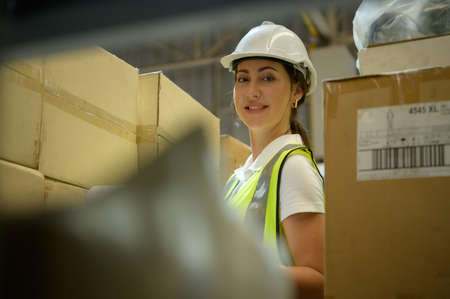 Female warehouse worker working at the storehouse . Logistics , supply chain and warehouse business concept .