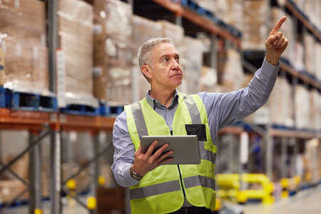 Collecting data on all current stock and merchandise. a mature man using a digital tablet while working in a warehouse.