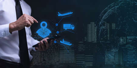 Global logistics network concept. Delivery Planning on virtual screen.