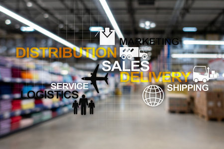Logistics and transportation concept on supermarket background.