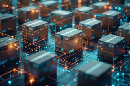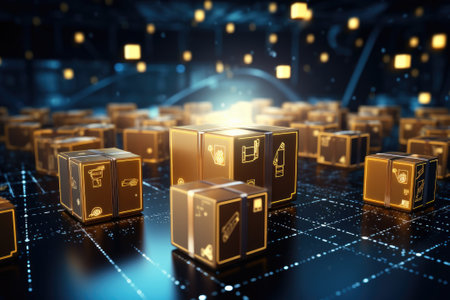 Abstract of global logistics with glowing boxes and digital networks Concept, Transportation