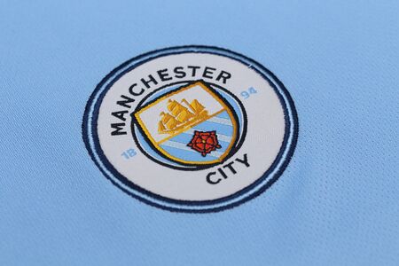 BANGKOK, THAILAND - JULY 10, 2016: The Logo of Manchester City Football Jersey on July 10,2016 in Bangkok Thailand.