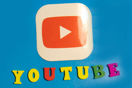 Los Angeles, California, USA - 25 January 2020: YouTube logo or icon flat lay with letters, Illustrative Editorial.