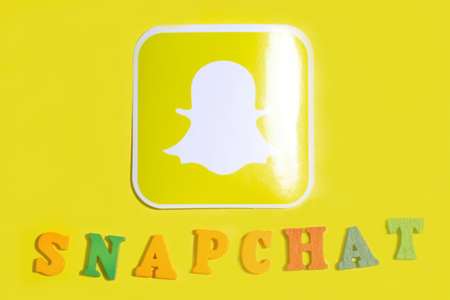 Los Angeles, California, USA - 25 January 2020: Yellow logo of Snapchat, Illustrative Editorial.
