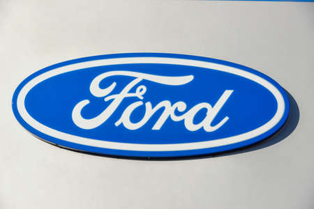 Lugano, Switzerland - 24 October 2018: Logo sign of Ford car dealer at Lugano on Switzerland