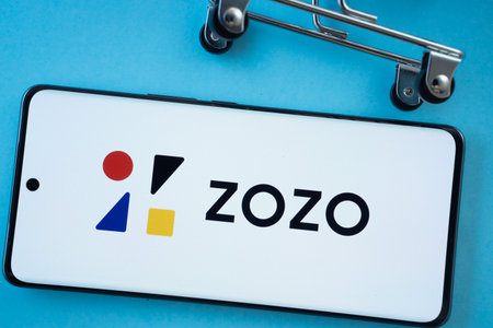 Dhaka, Bangladesh- 03 July 2025: Smartphone screen showing the ZOZO logo with shopping cart wheels on a blue background.