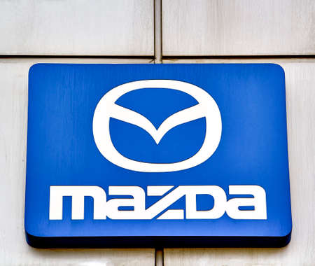 Mazda dealership sign. Mazda is a Japanese automaker and produces over 1 million vehicles per year.