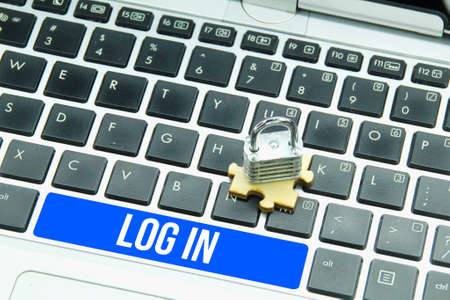 laptop keyboard and key with the word Login. the concept of online safety