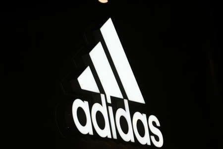 LONDON, UK - APRIL 7TH 2016: A sign for an Adidas retail store on Oxford Street in London, on 7th April 2016.