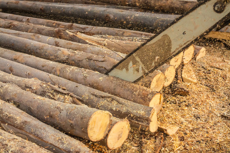 Sawmill. Image of sawing machine during operation