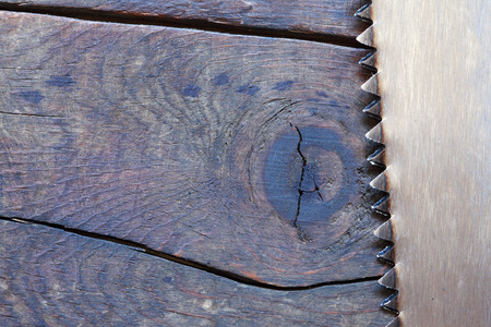 Saw on a wooden background
