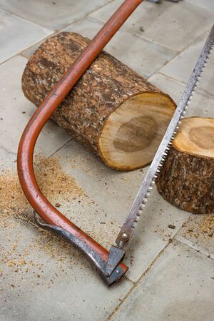 Stub and saw, tree and metal
