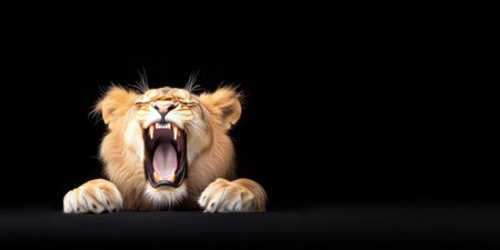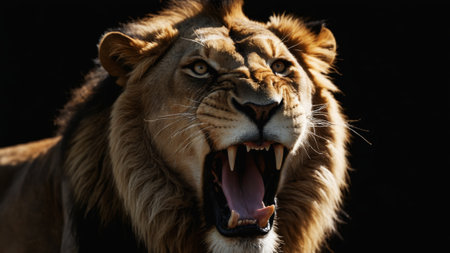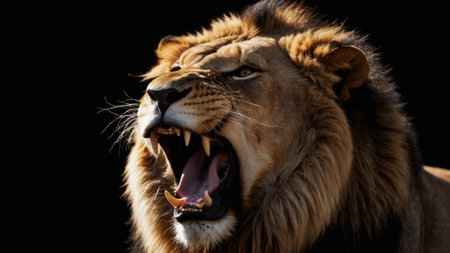 Close-up of Roaring Lion with Black Background