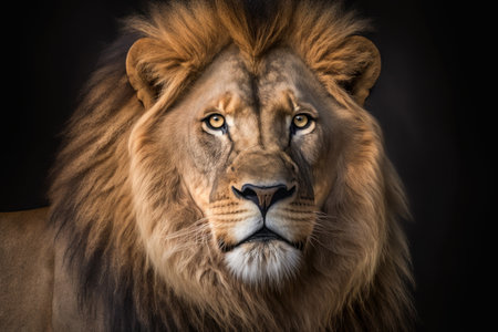 Lion portrait on dark background, AI Generative