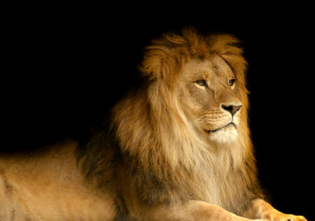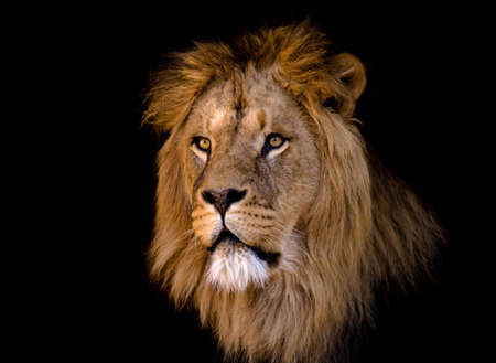 Portrait of a lion against black background
