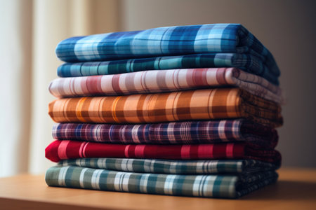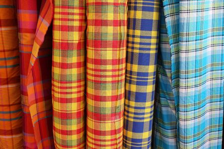 Folded and stacked madras tablecloths, tradition of the Caribbean islands