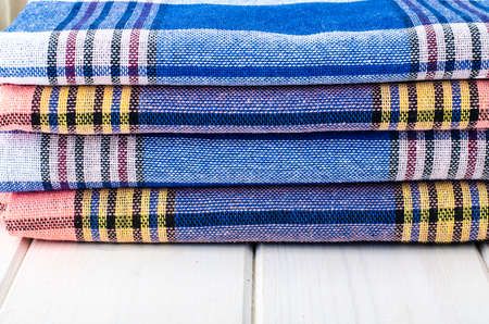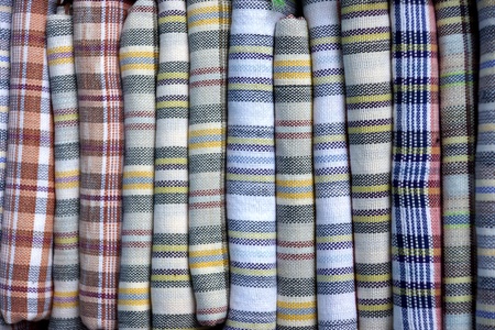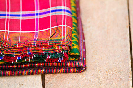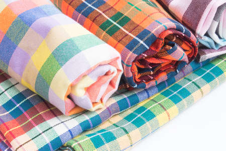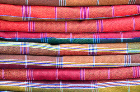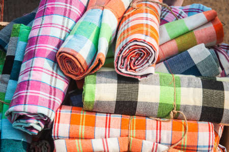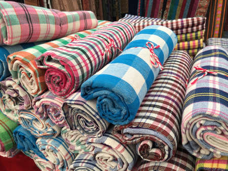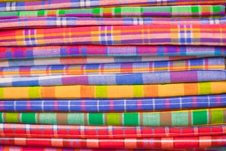Colorful handmade loincloth. Pile of Loincloth fabric Thailand silk. hand-woven , Plaid pattern, Loincloth pattern, Tartan pattern, Check pattern from local and cultural product in Thailand.