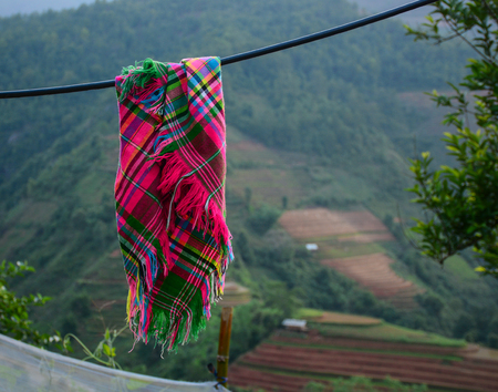 Hmong head-dress drying at sunny day in Sapa Township, Northern Vietnam.