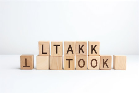 A creative arrangement of colorful wooden blocks on a surface against a blue background, promoting learning and development