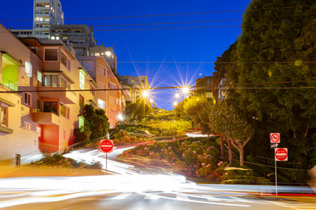 Twilight view of the famous Lombard Street at San Francisco, California