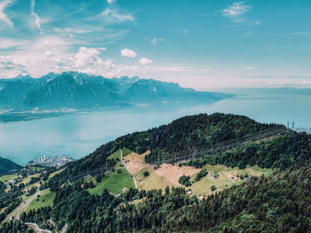 Aerial view of Lake Geneva from Les Avants