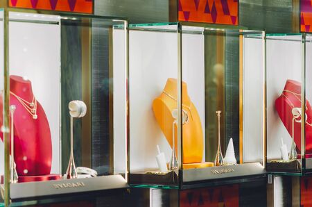 MOSCOW, RUSSIA - July 05, 2018: Showcase jewelry store in the central Moscow department store.