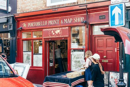 London/UK - July 21 2018: The Portabello Print and Map Shop on Portobello Road in Notting Hill, London, UK