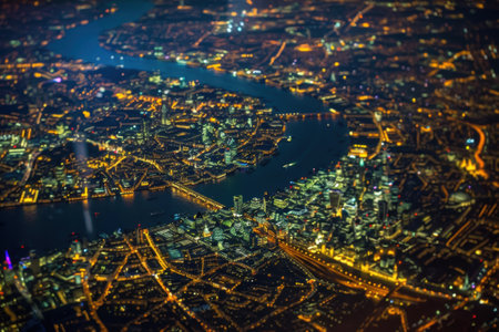 Top view of London from space, London map grid, Aerial view of River Thames.