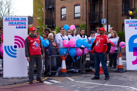 LONDON - APRIL 22: spectators support the runners at the London marathon on April 22, 2012 in London, England, UK. The marathon is an annual event.