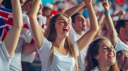 Sport fans cheer and celebrating a winning tournament in stadium. Generative AI