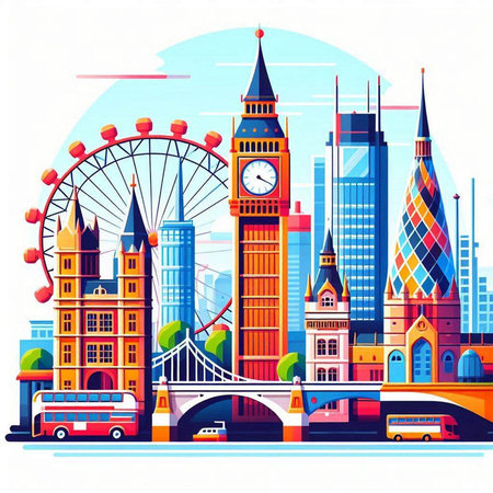 London, United Kingdom. City landscape with famous buildings. Vector illustration.