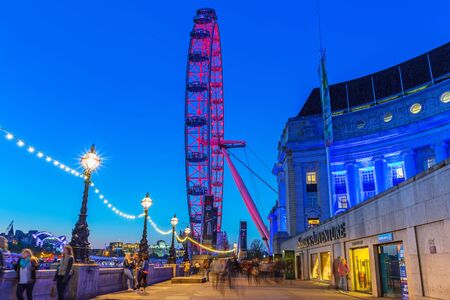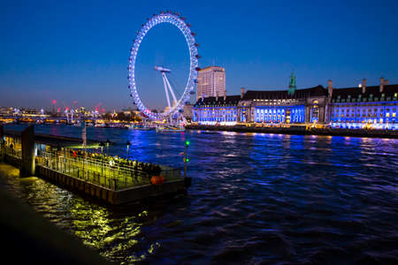London, October 2019: London Eye Ferris Wheel, view from Westminster Bridge in the evening